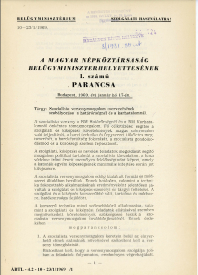 Szocialista versenymozgalom szervezésének szabályozása (ÁBTL)